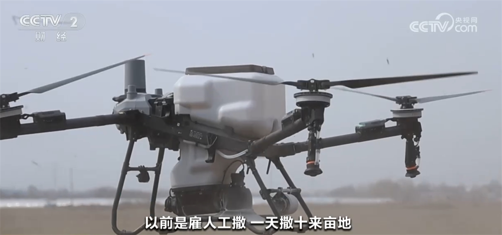 陕西省西安市临潼区某种植专业合做社理事长尚小林称:“这是本年刚买的无人机,第一次用,一个小时撒肥一百多亩地,大大提高了工做效益。以前是雇人工撒,一天撒十来亩地。”